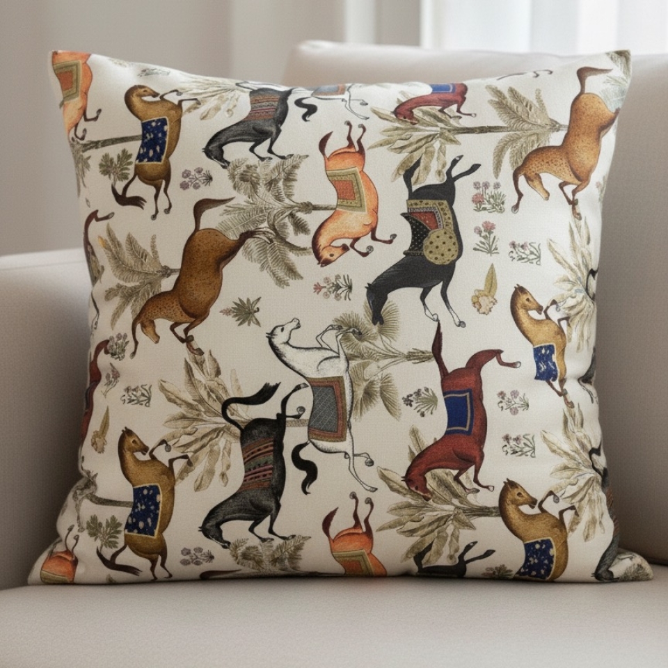 Fodera copri cuscino di esclusiva nostra produzione 80 % cotone 20 % poliestere , chiusura a sacchetto, lavabile in lavatrice fino a 40° ( per il primo lavaggio si consiglia di bagnare in acqua fredda)