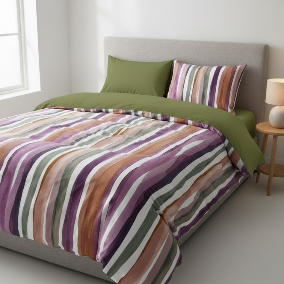 Copripiumino Raso stripe oliva